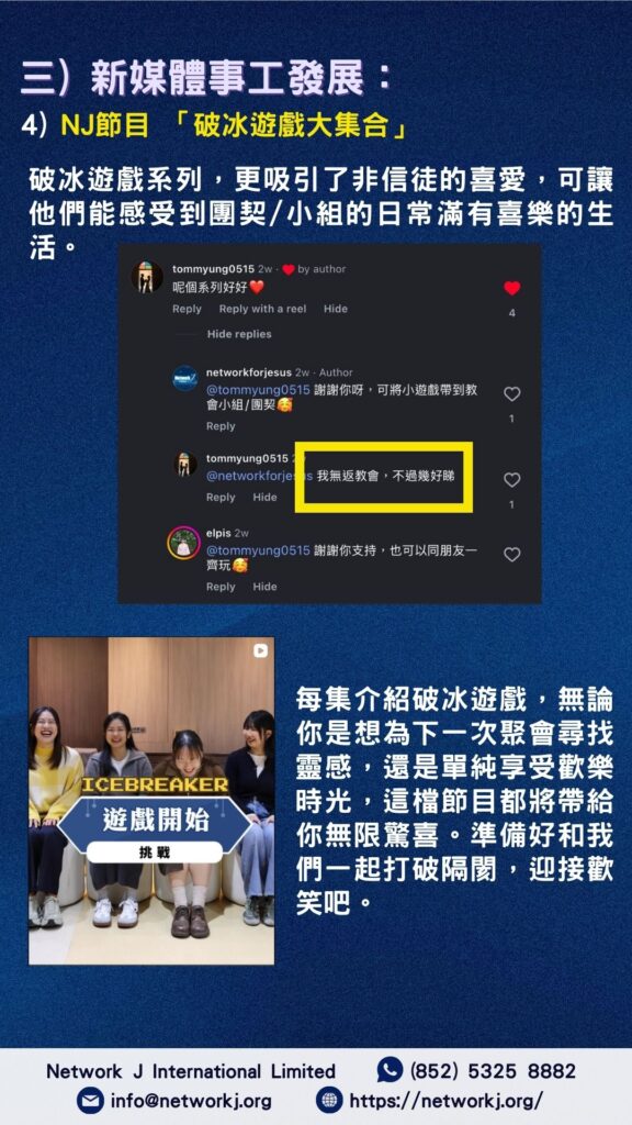 破冰遊戲系列,更吸引了非信徒的喜愛,可讓他們能感受到團契/小組的日常滿有喜樂的生活。