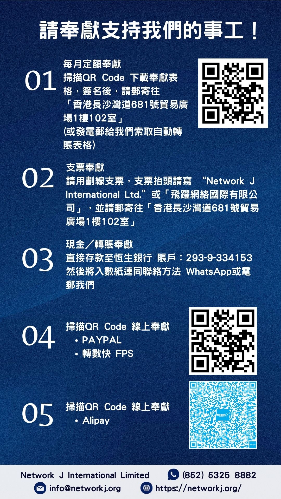 Unit 102, 1/F, Trade Square, 681 Cheung Sha Wan Road, Kln, H.K. | Email : info@networkj.org | Tel : 2433-3073