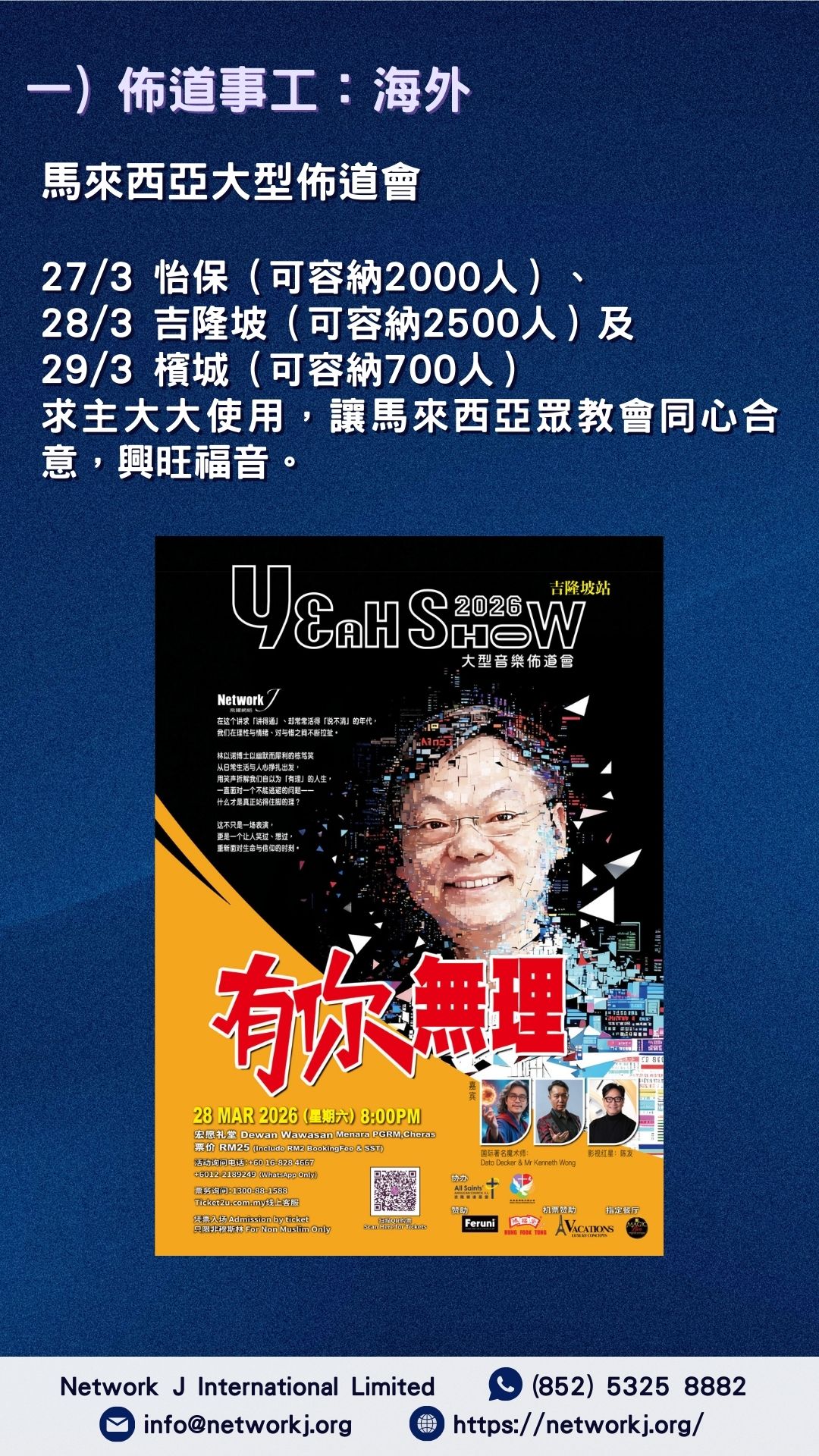 求主大大使用,讓馬來西亞眾教會同心合意,興旺福音。