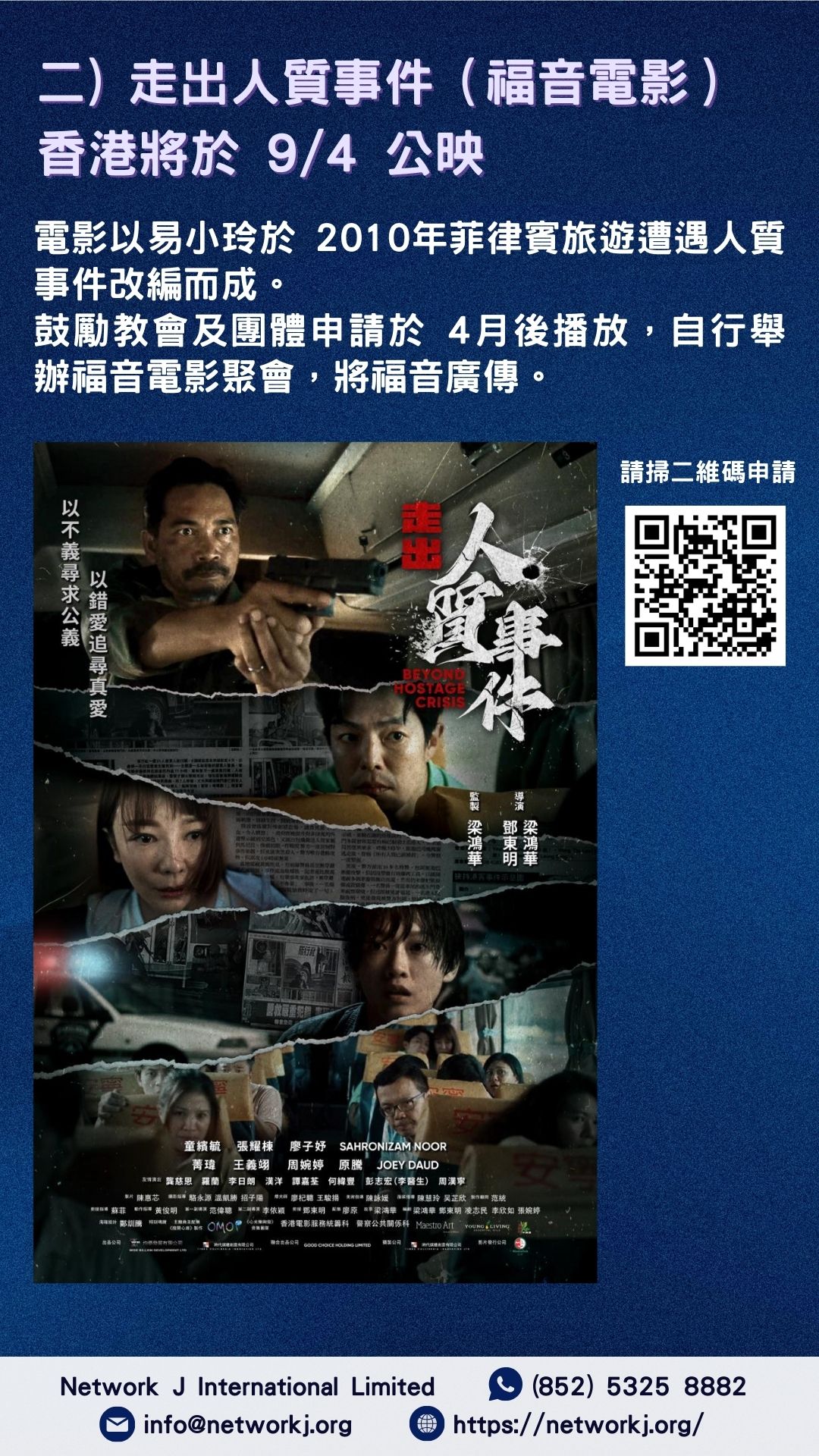 鼓勵教會及團體申請於 4月後播放,自行舉辦福音電影聚會,將福音廣傳。