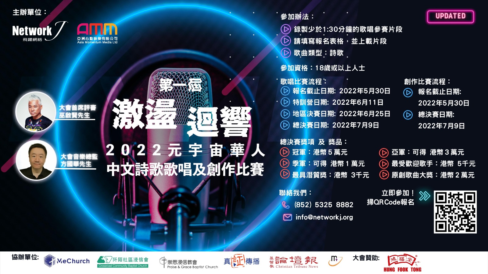 【更新版】「激盪迴響」- 元宇宙華人中文詩歌歌唱及創作比賽🎵 🎵 🌟立即報名:https://bit.ly/3K7s4MR 疫情下不能外出治動,但又想用你的歌聲或音樂才華事奉神?元宇宙的世界連結了現實與虛擬,安在家中也可以參加比賽。初賽只需要錄製少於1:30分鐘的歌唱參賽片段便可,快點TAG喜歡詩歌的朋友報名啦!