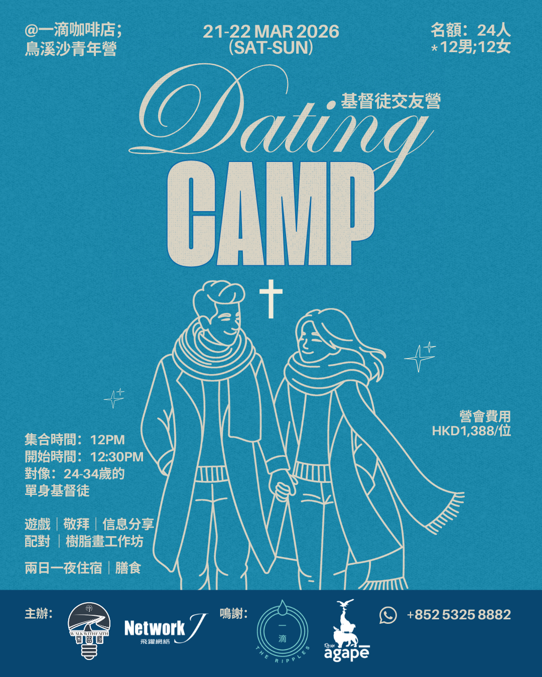 於3月21-22日舉辦的「基督徒交友營」已完滿結束,感恩神的帶領,共24位的青年基督徒參與,以及分享彼此的信仰及愛情觀,凝聚了一班愛主得信徒。